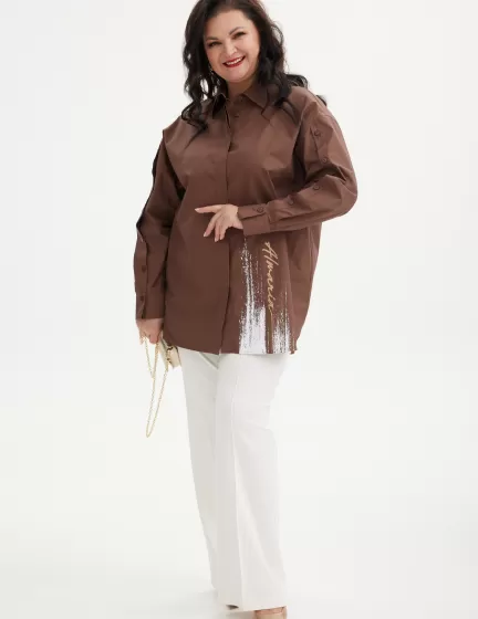 Праздничными. Рубашки коричневого цвета из этой категории воплощают в реальность все модные фантазии покупательниц. Изящные модели «МонАмур» имеют акцентные элементы в виде блестящих вставок, сборок, соблазнительных вырезов. Это позволяет выгодно подчеркнуть женские формы.